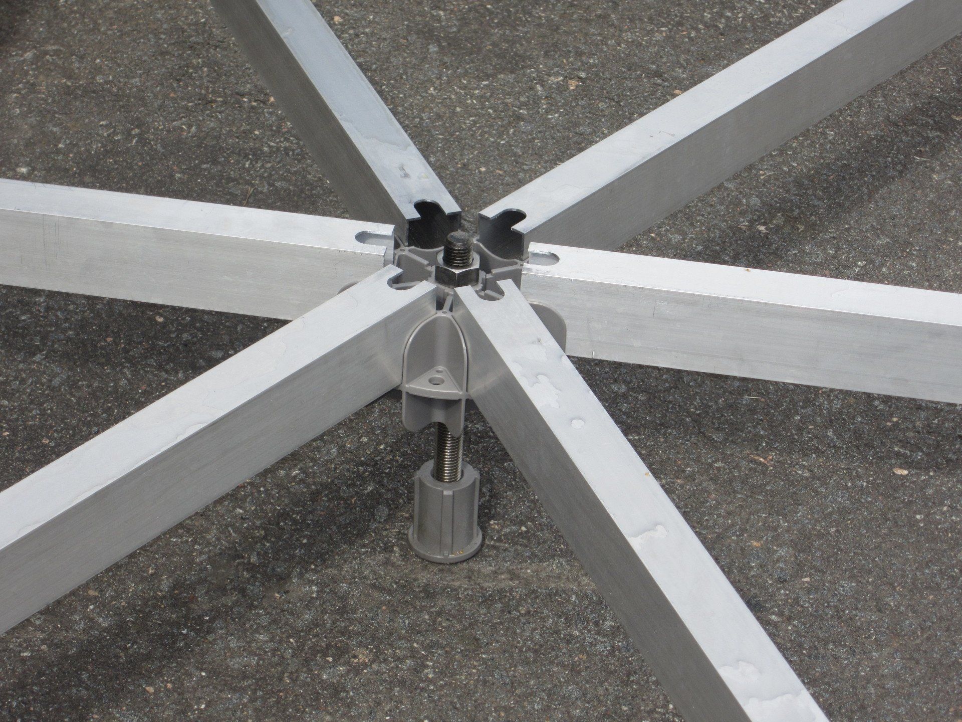 MDS/BS is probably the fastest and easiest flooring system at the moment. The system consists of aluminium beams and PEHD-parts. The beam is strong, lightweight, easy to use and has high torsional stability compared to some other similar profiles. In addition the superior design of trussed frame construction and multi-angle beam holder enables to configure the floor layout geometrically to many shapes. The raised floor enables under-floor installation of techniques etc. pipes, conduits and cables as well as electrical wire routing inside aluminum beams (high protection).